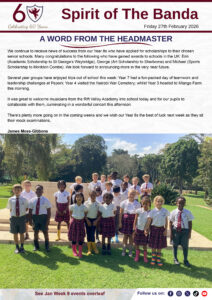 As the new terms begins, we are able to celebrate the first scholarship awards of the year from our Year 8 pupils – huge congratulations to both Naima (Round Square Scholarship to Brookhouse) and Des (Drama Scholarship to Braeburn School). We wish the pupils attending scholarship assessment days at Peponi and Hillcrest over the next few days the very best of luck.